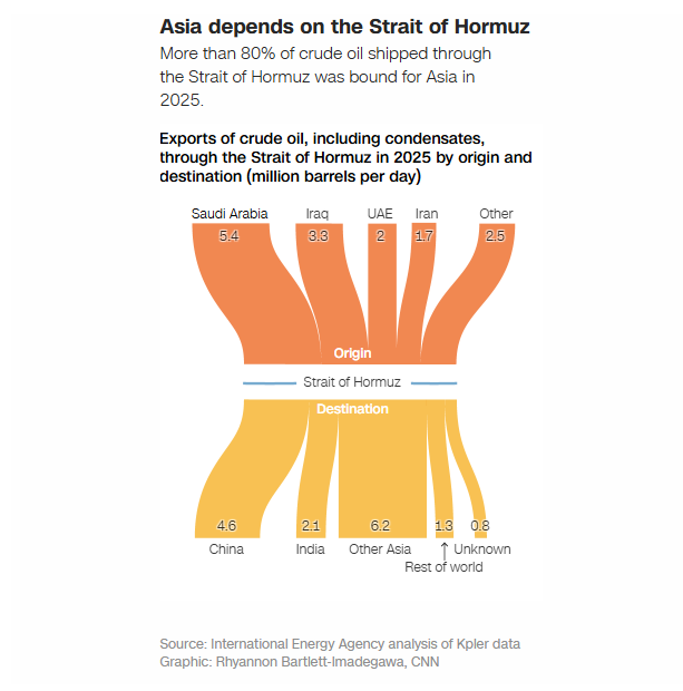Ngushtica e Hormuzit, një korridor i rëndësishëm detar që kalon pranë Iranit, është mbyllur pjesërisht, duke ulur mundësitë për transportin e naftës dhe gazit dhe duke shtuar pasigurinë në tregjet globale.
