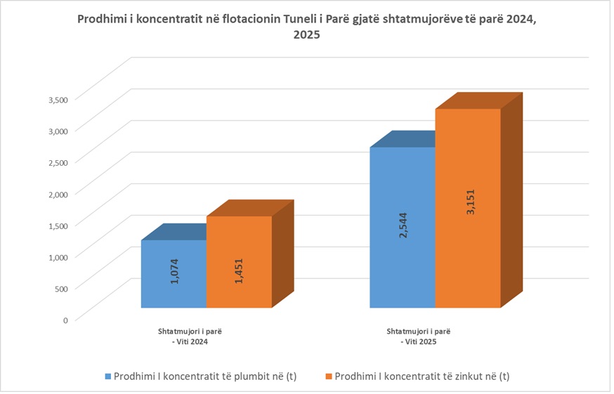 Ndërmarrja Trepça bën të ditur se gjatë shtatëmujorit të parë të vitit 2025, Flotacioni “Tuneli i Parë” ka shënuar rezultate të jashtëzakonshme në prodhimin e koncentratit të plumbit (Pb) dhe zinkut (Zn), duke tejkaluar dukshëm arritjet e së njëjtës periudhë të vitit 2024.