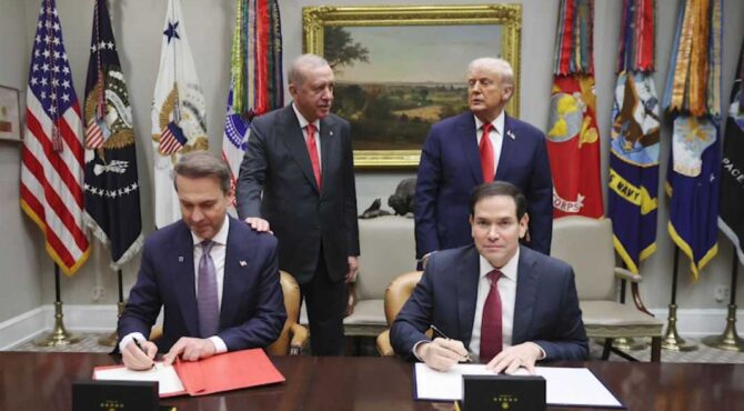 Gjatë vizitës së Presidentit turk Recep Tayyip Erdoğan në Shtëpinë e Bardhë, Turqia dhe Shtetet e Bashkuara kanë nënshkruar një Memorandum Mirëkuptimi për Bashkëpunim Strategjik në Energjinë Bërthamore Civile. Dokumenti u nënshkrua në prani të liderëve të të dy vendeve, si dhe Sekretarit amerikan të Shtetit, Marco Rubio. Ministri turk i Energjisë, Alparslan Bayraktar, deklaroi … Continue reading Turqia dhe SHBA nënshkruajnë marrëveshje strategjike për energjinë bërthamore