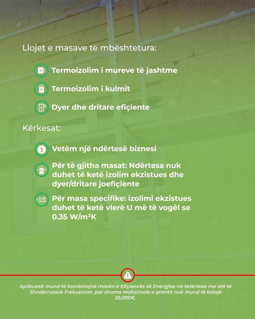 • Masa 2: Mbështetje për masat e efiçiencës së energjisë në ndërtesat e bizneseve. / SHKARKO UDHËZUESIN