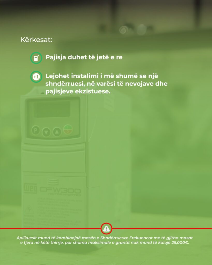 • Shndërrues frekuencor për të rritur efiçiencën e pajisjeve që prodhuesit tashmë i kanë në përdorim.