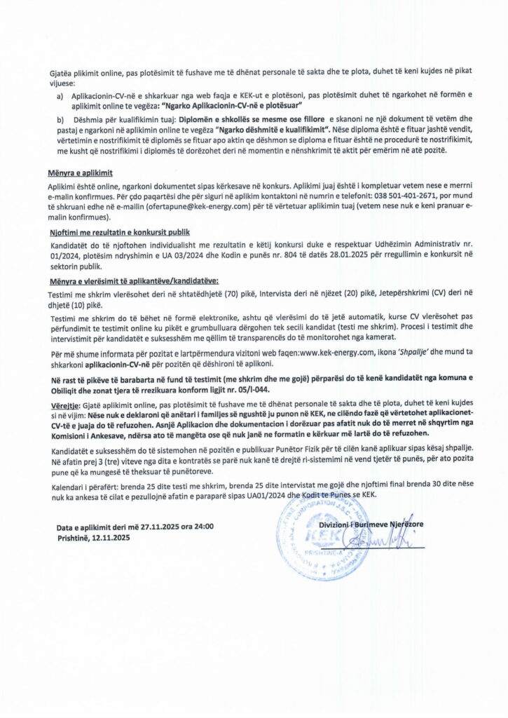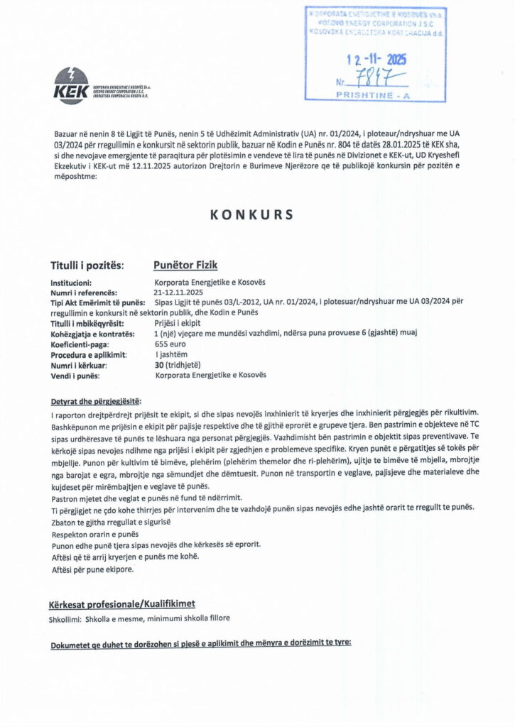 Home / Vende pune / KEK: Punëtor Fizik (30)