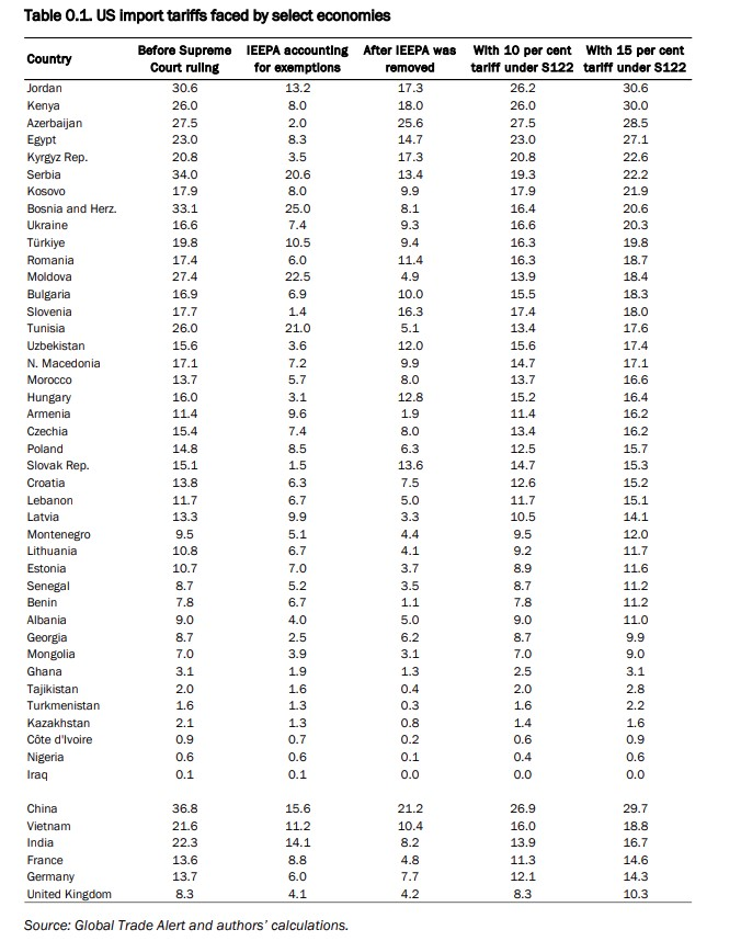 Ndërkohë, disa vende të tjera të rajonit si Bosnja dhe Hercegovina e Serbia, si dhe Moldavia e Tunizia konsiderohen përfituese relative nga ndryshimet e fundit tarifore pasi tarifat ndaj tyre ose kanë pasur rritje shumë më të vogël, ose kanë mbetur pothuajse në të njëjtin nivel.